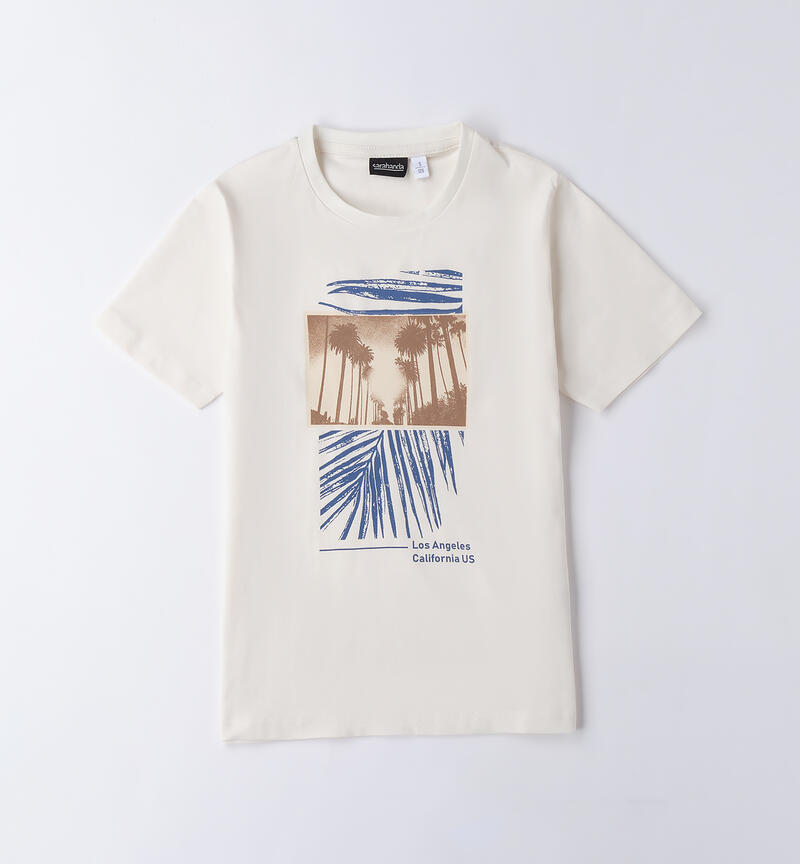 T-shirt per ragazzo Sarabanda 8-16 realizzata in jersey stretch di cotone. Il modello è in tinta unita con stampa frontale.